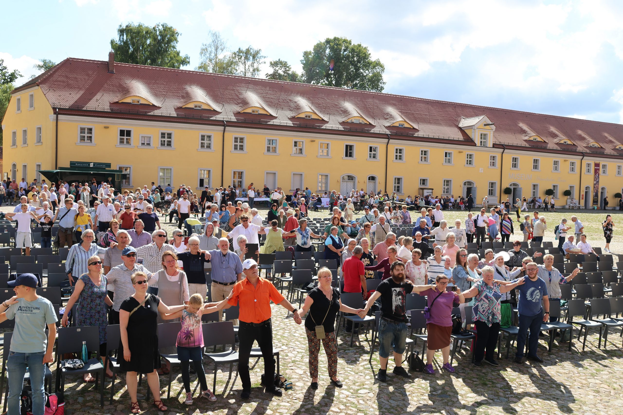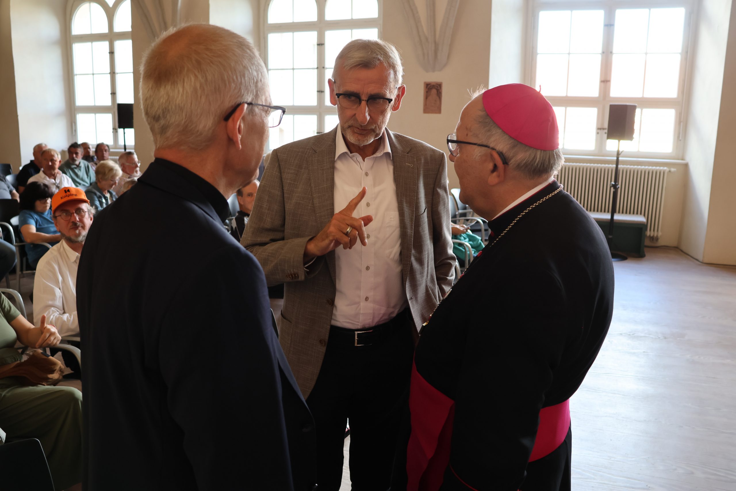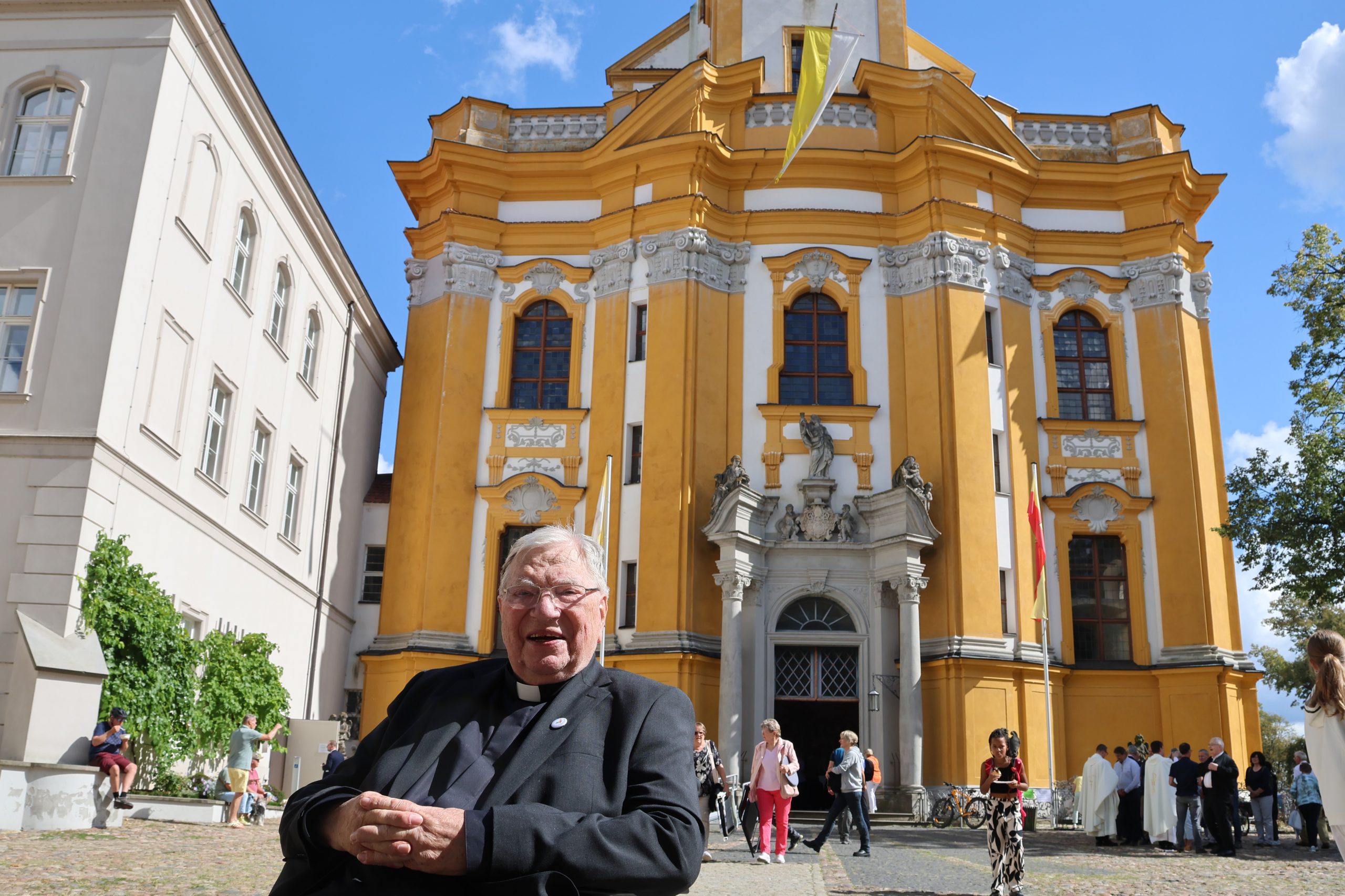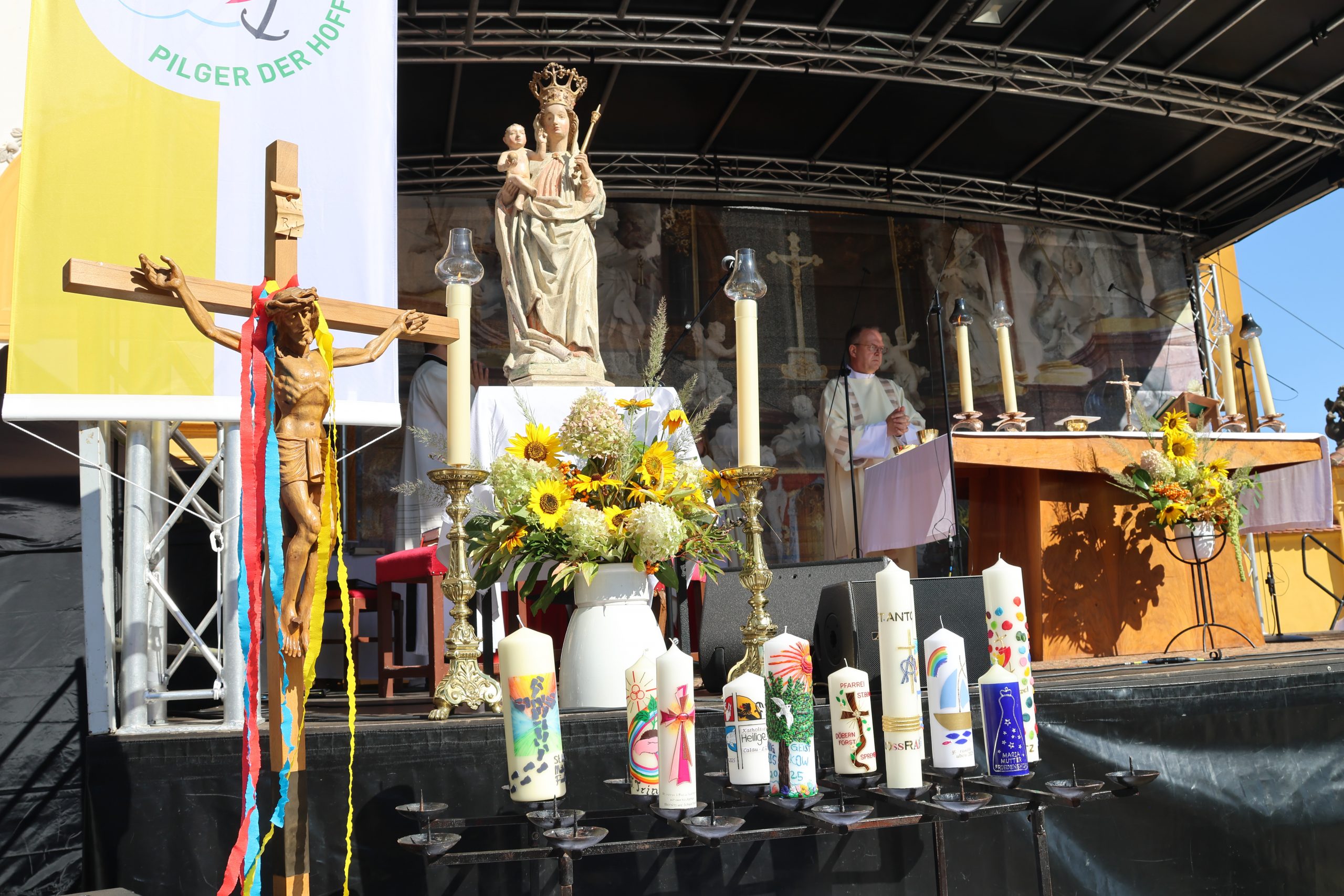 Am gestrigen Sonntag, dem 7. September 2025, fand auf dem Stiftsplatz in Neuzelle die Bistumswallfahrt des Bistum Görlitz statt. Der Einladung von Bischof Wolfgang Ipolt folgten über 1000 Gläubige. Belohnt wurden sie mit bestem Wetter und einem vielfältigen Programmangebot unter dem Motto „Pilger der Hoffnung werden“, dem Jahresthema des Bistums, das sich an das Motto des Heiligen Jahres 2025 „Pilger der Hoffnung“ anlehnt. Als Ehrengast nahm Bischof Clemens Pickel aus dem Bistum St. Clemens in Saratow in Russland an der Wallfahrt teil. Er konzelebrierte im Wallfahrtshochamt und hielt die Predigt in der Abschlussandacht der Wallfahrt in der Stiftskirche.