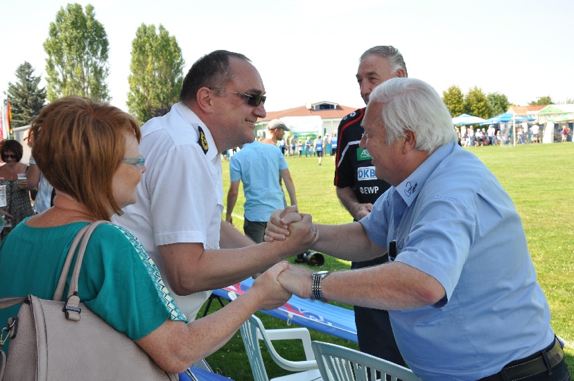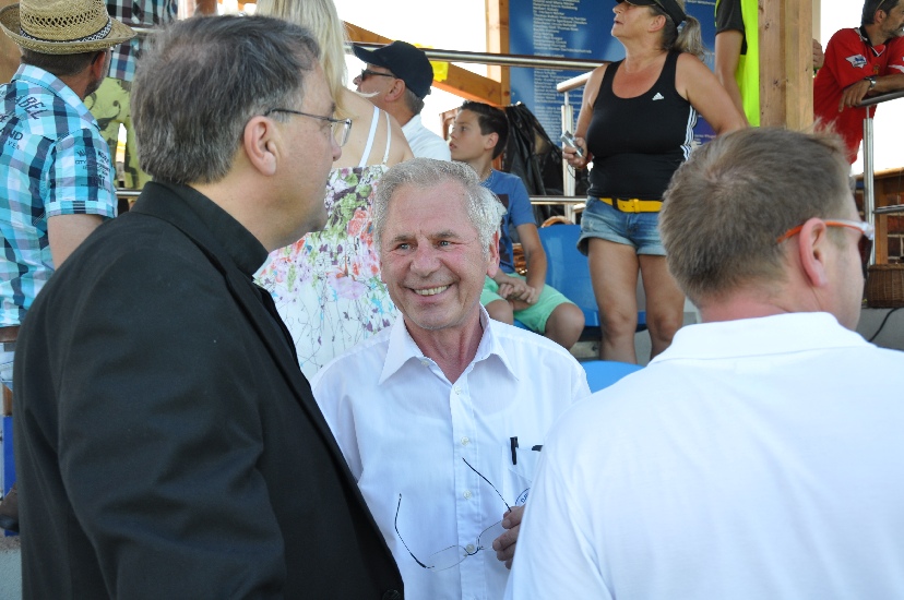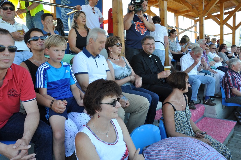 Von seinem Tribünenplatz aus erzählt der Wittichenauer Pfarrer Dr. Wolfgang Kresák, wie die Deutsche Jugend Kraft (DJK) entstand: „Auf dem Katholikentag 1920 in Würzburg war ,Kirche und Sport‘ das Thema. Prälat Carl Mosters sagte dabei:,Nicht dem Turn– und Sportverein gebührt die erste Anerkennung, der die meisten Siege davonträgt, sondern demjenigen, der die meisten seiner Mitglieder durch Körperbildung zur Geisteskraft führt‘. Dieses Ziel ist eines der Ziele, welche die DJK gegenüber vielen anderen Sportvereinigungen auszeichnet“.