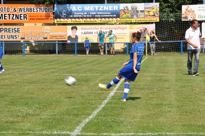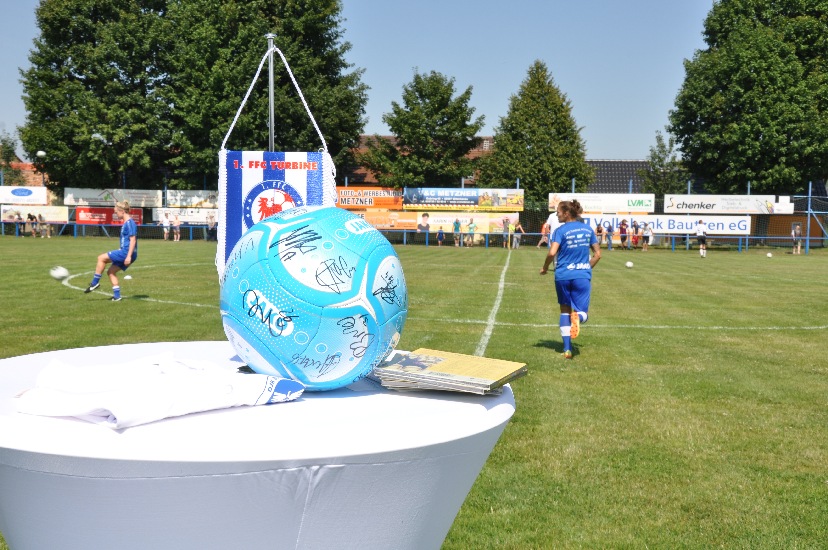 gemacht. Verkehrte Welt, könnte man denken, als die Männermannschaft DJK Blau Weiß Wittichenau in schwarz-weißen Trikots antritt; die Frauen des FFC Turbine Potsdam laufen in Blau Weiß auf. FFC Turbine Potsdam