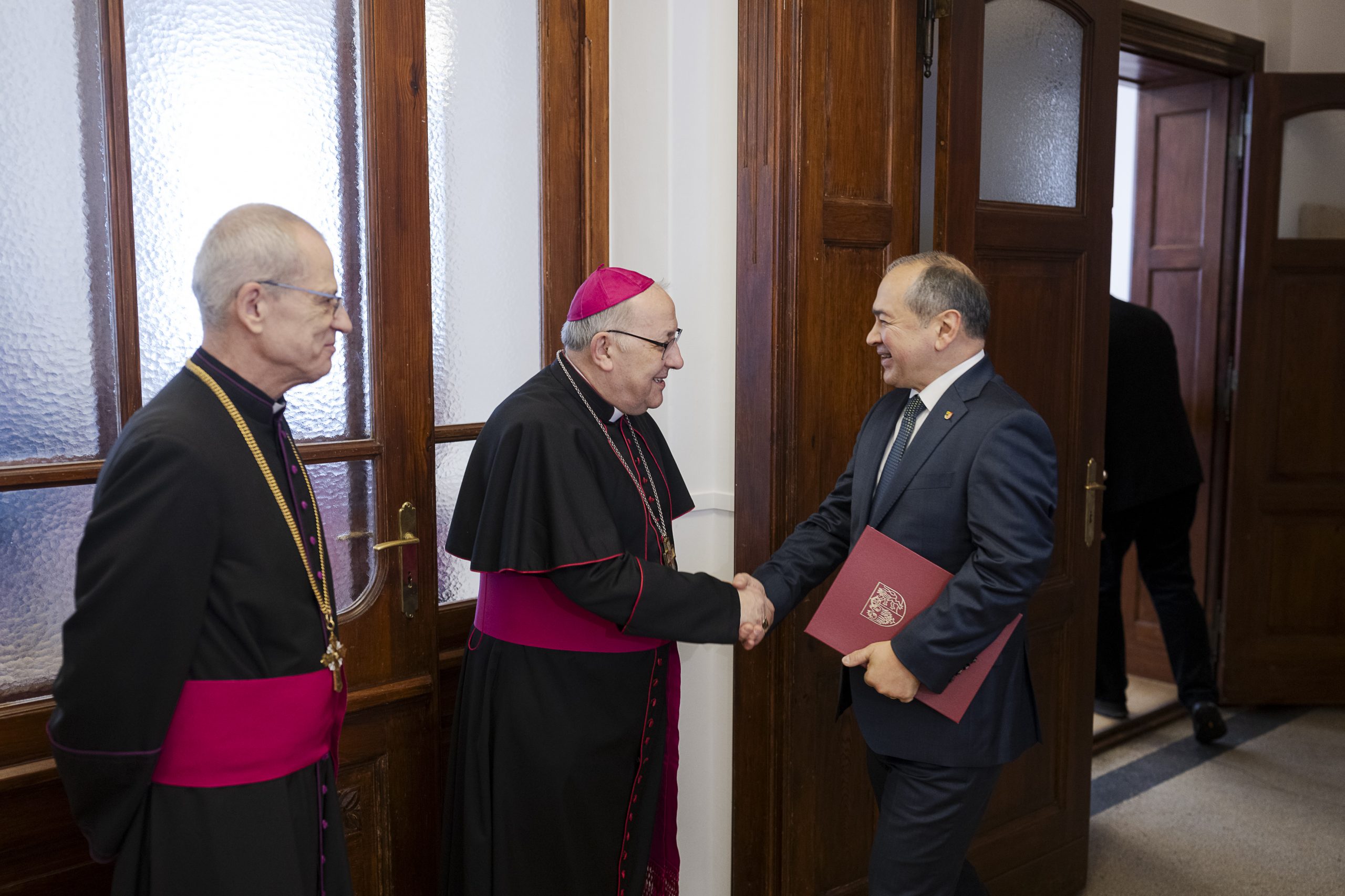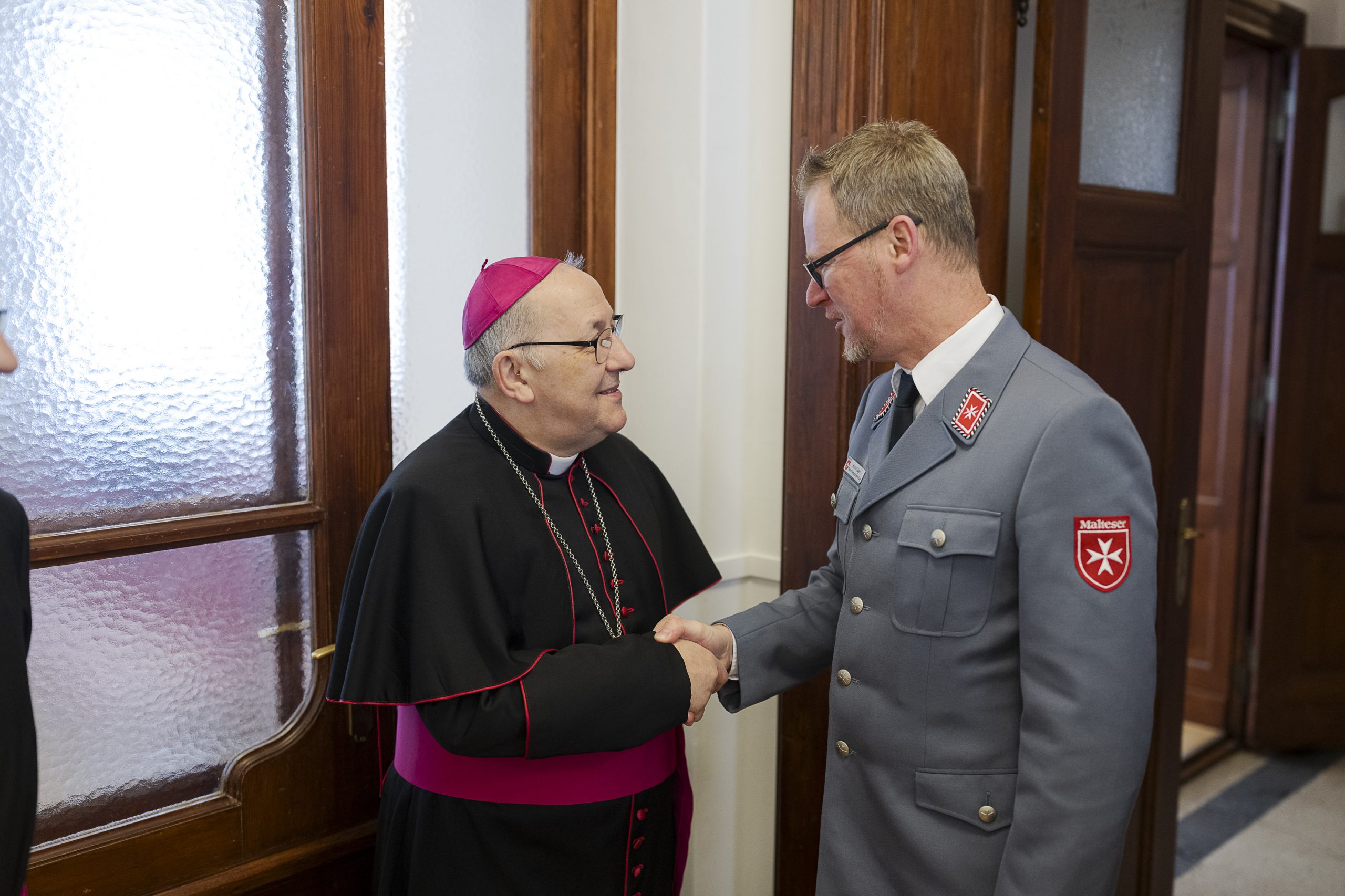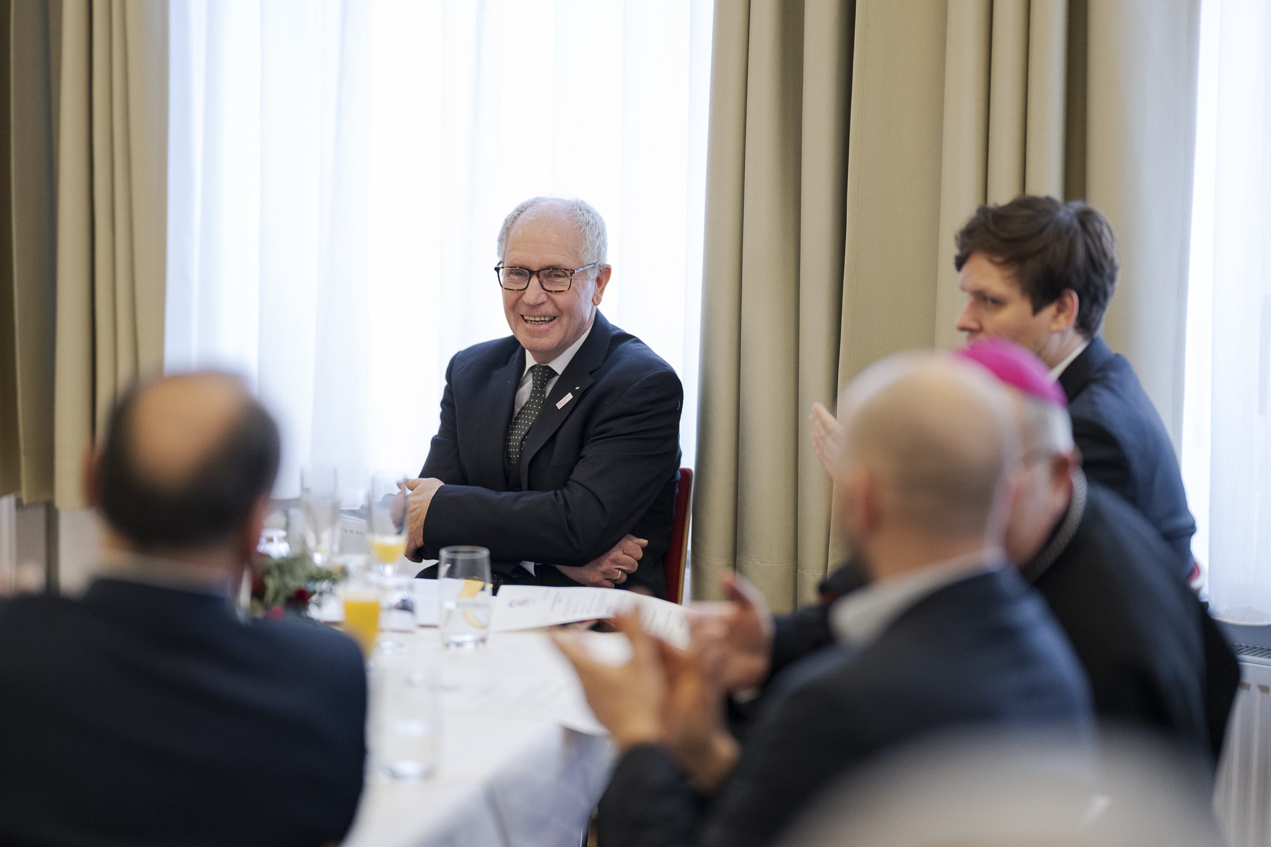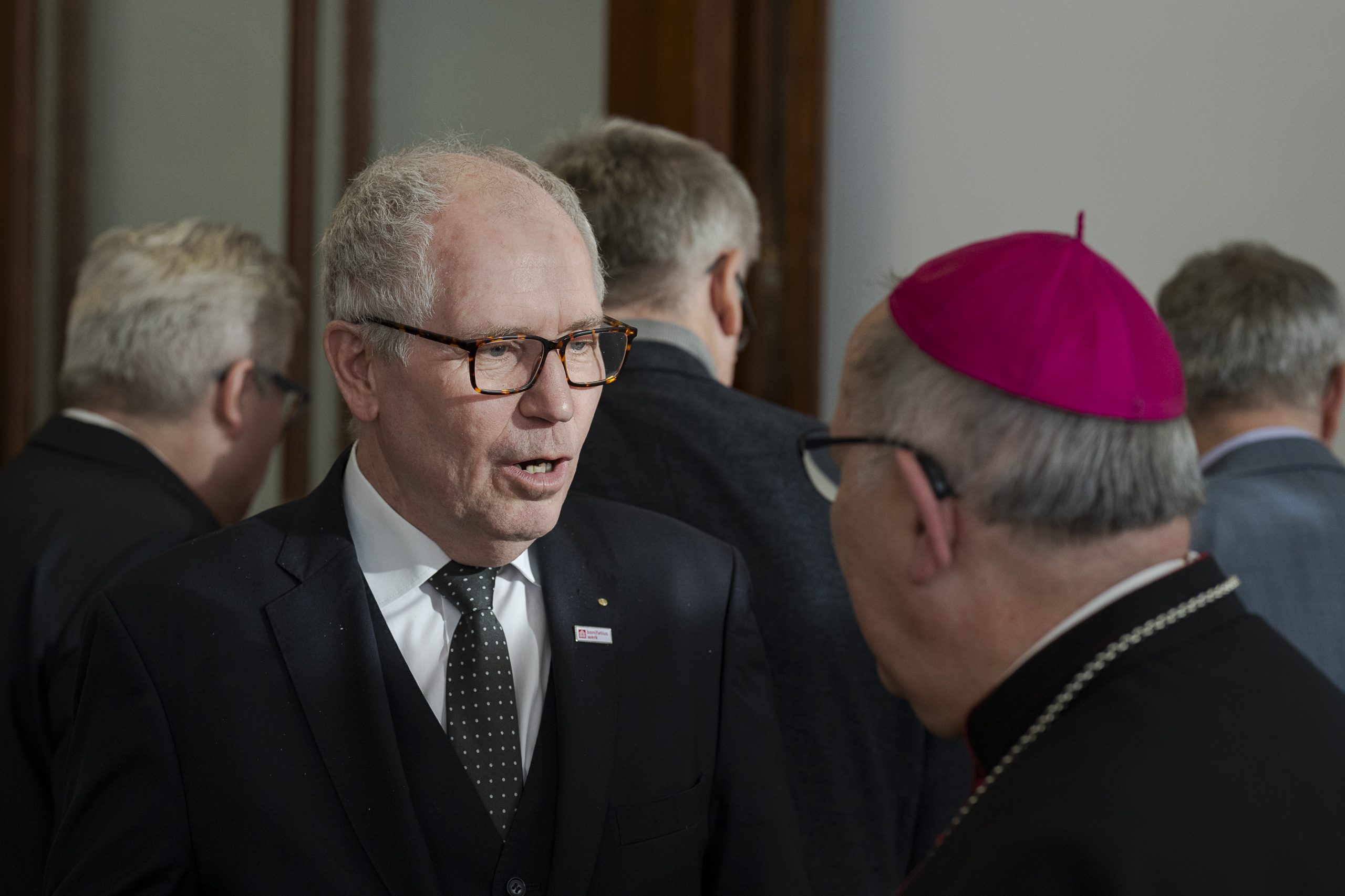 Die Ansprache von Bischof Wolfgang Ipolt bildete schließlich Höhepunkt und Abschluss des offizielen Teils des Neujahresempfangs. Bischof Ipolt stellte seine Ansprache unter den Titel „Brauchtum als Transzendenzerfahrung – Dienst der Kirchen an der Gesellschaft“. Anhand verschiedener Bräuche christlicher Prägung und Herkunft erläuterte Bischof Ipolt, welche tragende Rolle das Brauchtum für das Funktionieren einer Gesellschaft bis heute einnimmt. Er nahm dabei u.a. auch Bezug auf den verstorbenen Papst Franziskus, der christliche Bräuche als „Frucht des inkulturierten Evangeliums“ bezeichnet hat.