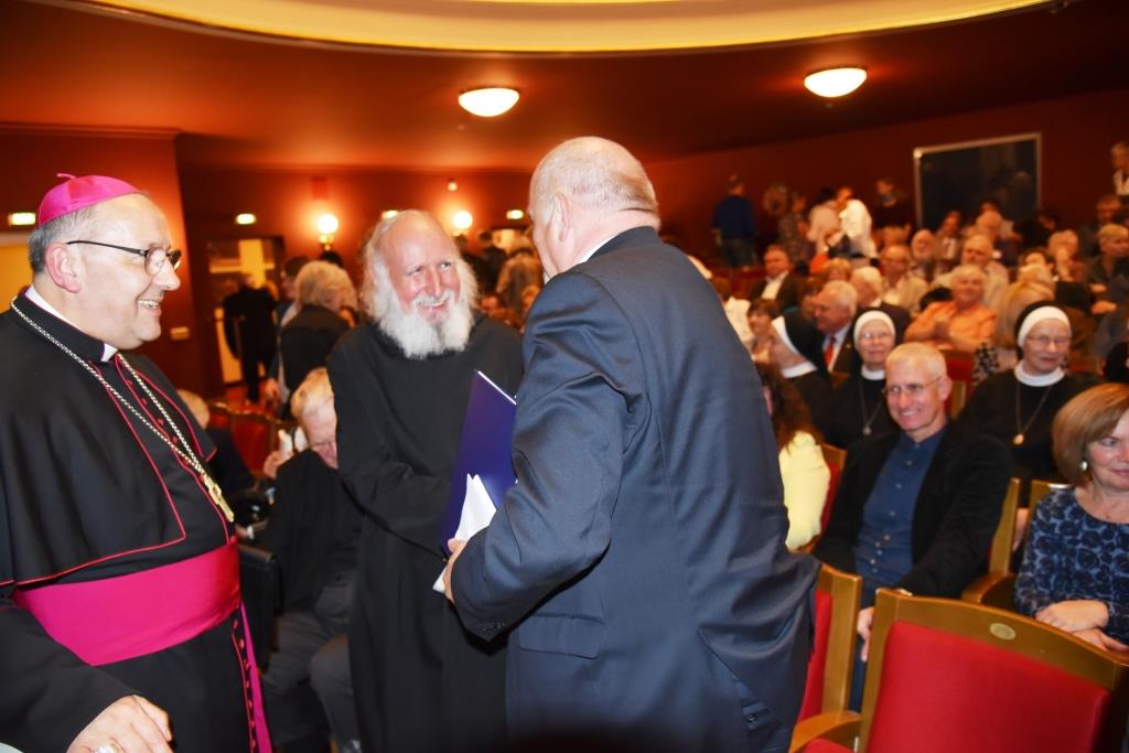 Nach einem Grußwort des Oberbürgermeisters der Stadt Görlitz, Siegfried Deinege, begrüßte Bischof Ipolt den Benediktinerpater Anselm Grün auf der Bühne und kündigt dessen Vortrag zum Thema . „Leben nach der Regel des Heiligen Benedikt“ an. Danach erklingt im Saal der „kleinen Semperoper“, wie der Oberbürgermeister es kurz zuvor zitierte, von Johann Sebastian Bach die Sonate E-Dur für Violine und obligates Cembalo, BWV 1016 – Adagio ma non tanto und Allegro. Nach anhaltendem Applaus für die beiden Musiker lud der Bischof zu Beisammensein, Gesprächen, Sekt und Saft ins Foyer des Theaters ein.