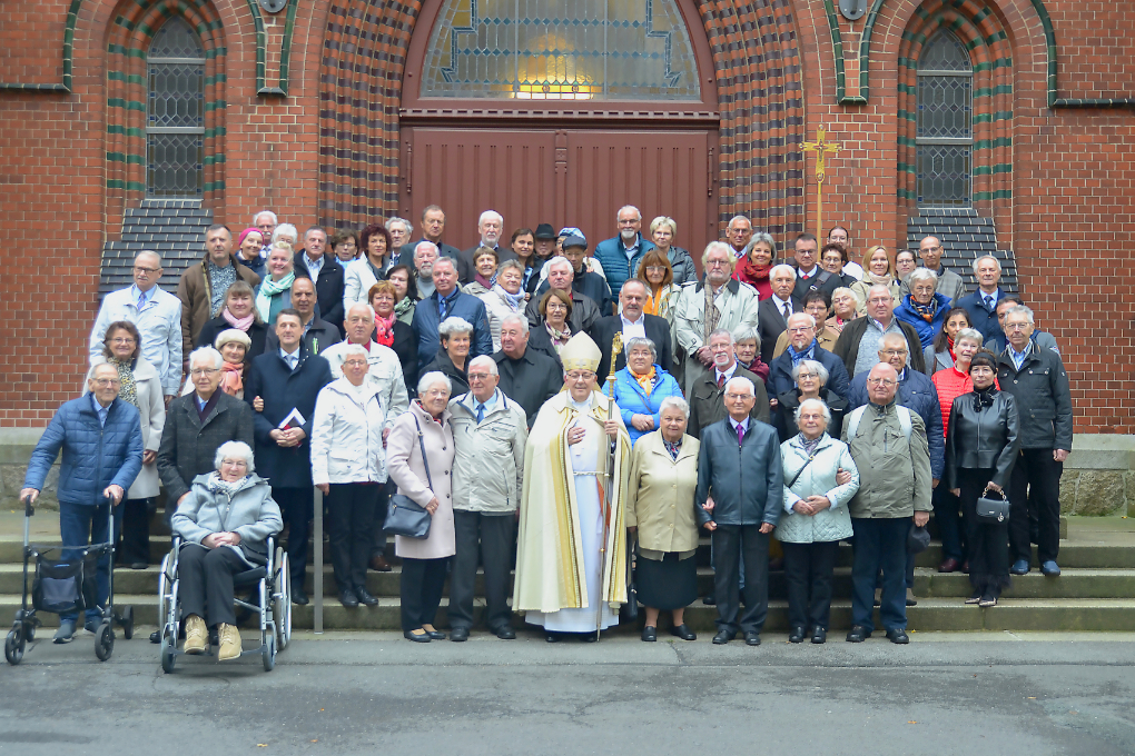 Am vergangenen Samstag, dem 11. Oktober 2025, waren fast vierzig Jubelpaare der Einladung unseres Bischofs zu einem Segnungsgottesdienst mit anschließender Begegnung in Görlitz gefolgt. Im Rahmen der Feier erneuerten die Paare ihr Eheversprechen und waren zu einer persönlichen Segnung durch den Bischof eingeladen. Zwölf der Anwesenden schauten auf sechzig gemeinsame Ehejahre zurück. Zwei Paare wurden ausnahmsweise durch einen Partner vertreten, da der andere durch Krankheit oder Tod nicht dabei sein konnte. Während der ergreifenden Segensfeier fand Bischof Ipolt für jedes Paar ein persönliches Wort.
