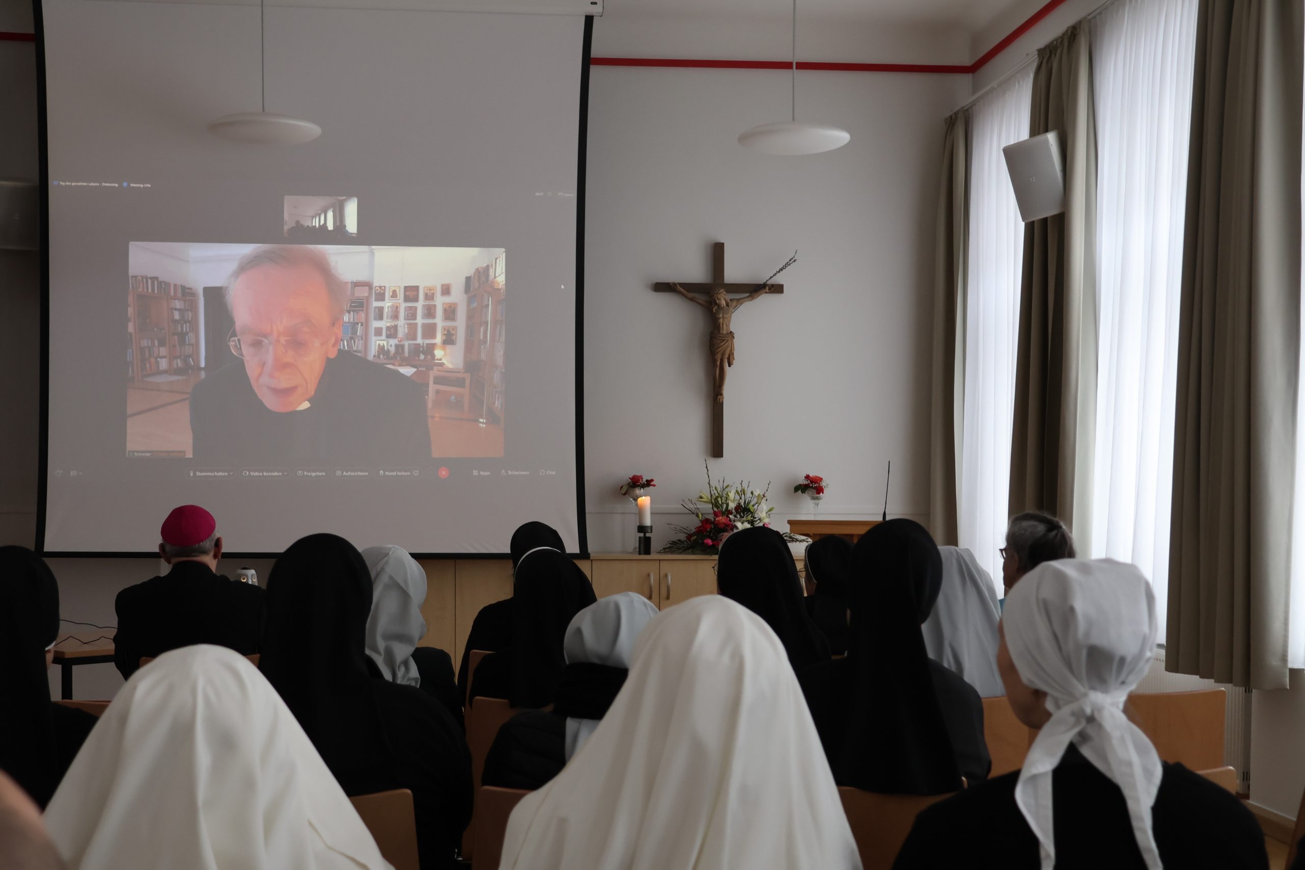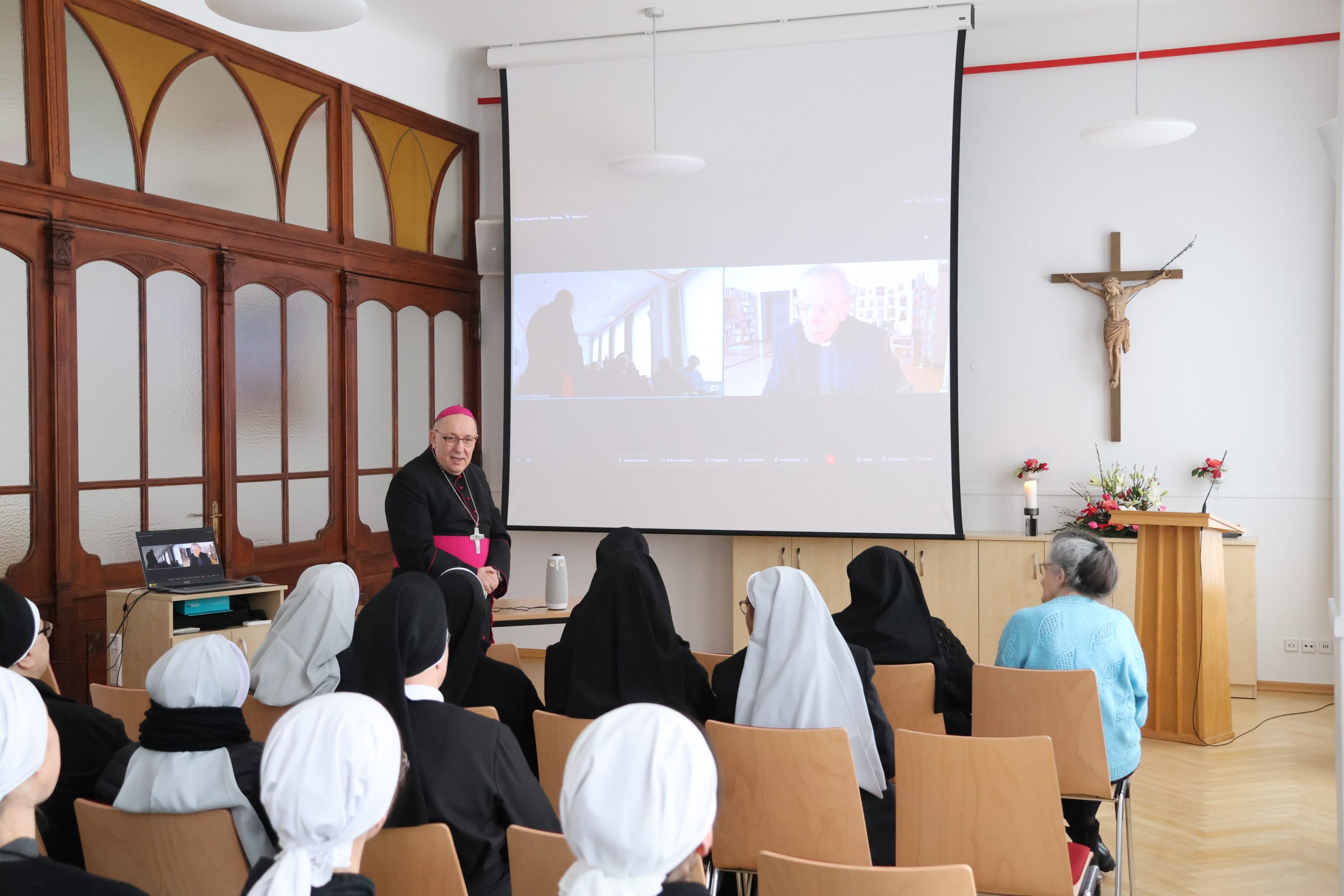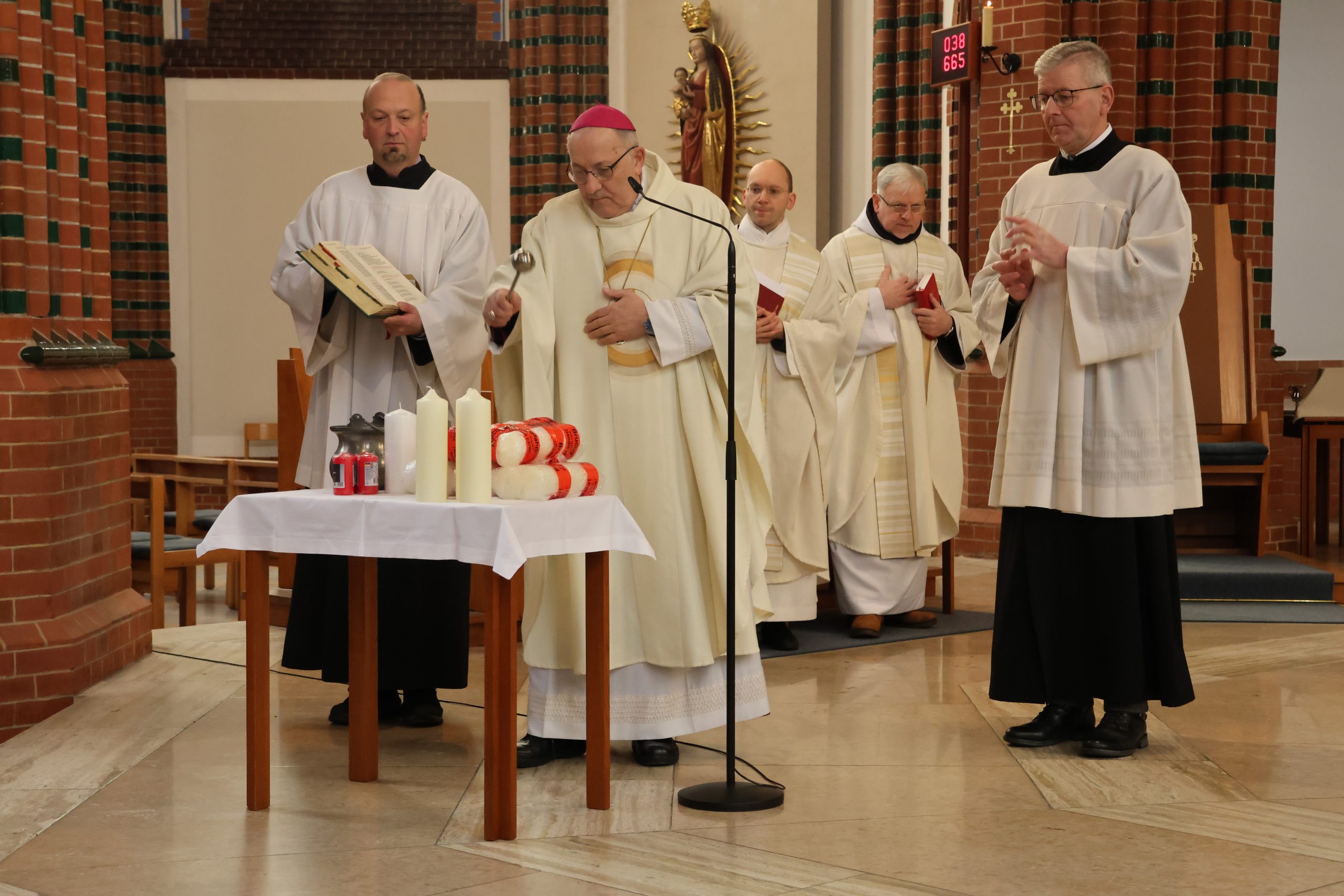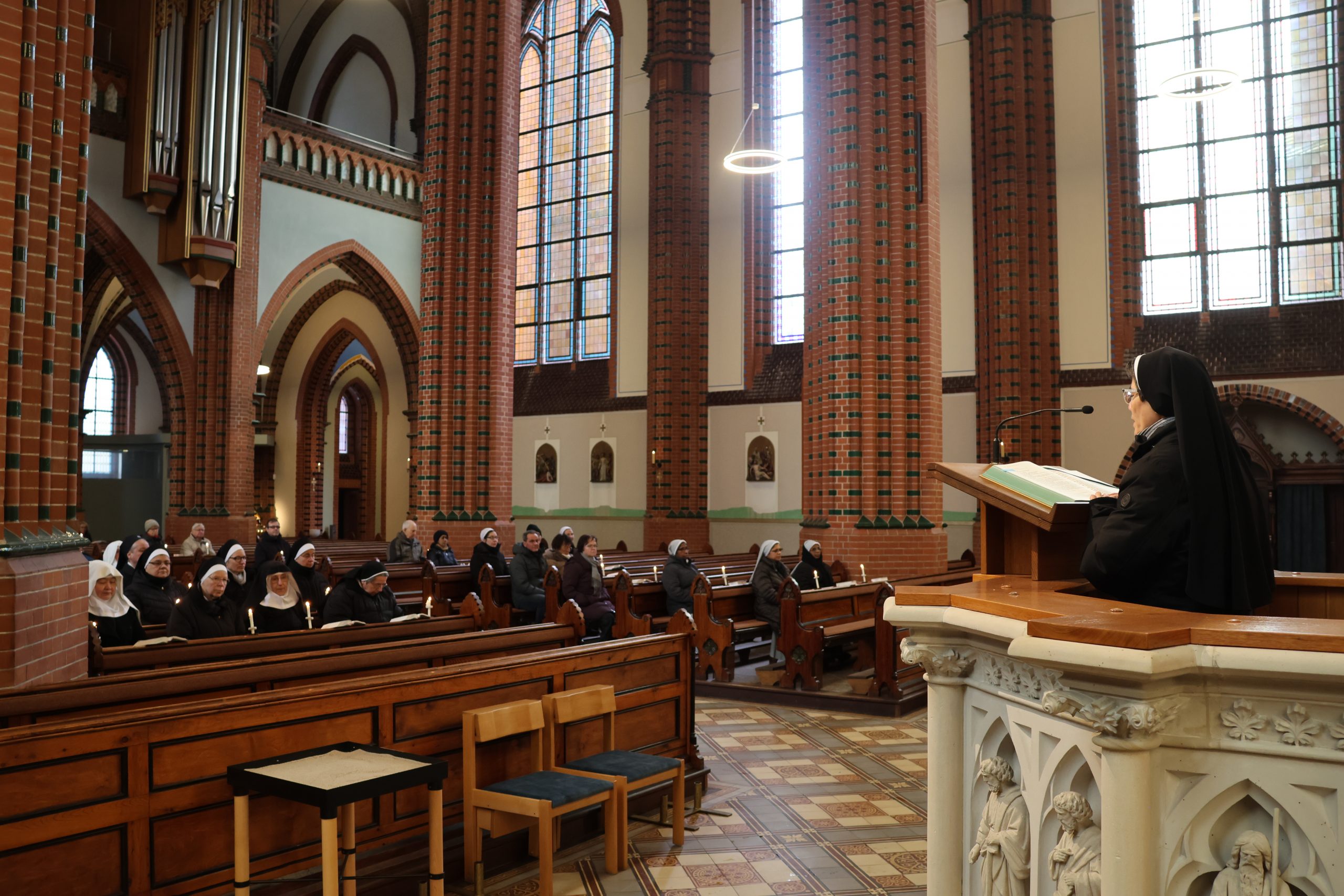 Wie in jedem Jahr lud Bischof Wolfgang Ipolt am Festtag der Darstellung des Herrn, dem 2. Februar 2026, alle Ordensleute unseres Bistums ein, mit ihm gemeinsam den Tag des geweihten Lebens zu begehen. Die Mitglieder zahlreicher Orden unseres Bistums folgten der Einladung nach Görlitz und feierten zu Beginn gemeinsam mit dem Bischof ein Pontifikalamt, zu dessen Beginn die Kerzen geweiht wurden. Im Anschluss an das Pontifikalamt waren alle Ordensleute noch herzlich zu einem geistlichen Vortrag ins St.-Otto-Stift eingeladen, den in diesem Jahr P. Dr. Michael Schneider SJ, Spiritual im Priesterseminar Eichstätt, hielt – mithilfe moderner Technik in digitaler Form per Video-Schalte. Nach einigen Informationen des Bischofs aus dem Bistum fand der Tag anschließend mit einem gemeinsamen Mittagessen sein festliches Ende.